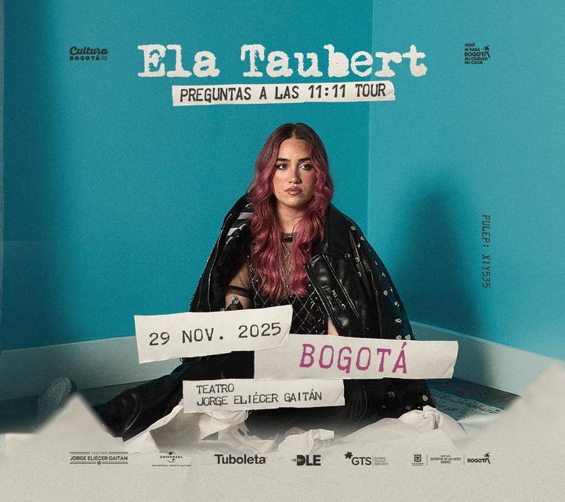 ELA TAUBERT : PREGUNTAS A LAS 11:11 TOURTeatro Jorge Eliecer GaitanTeatro Jorge Eliécer Gaitán Saturday, 29 November 2025 19:00 Teatro Jorge Eliecer GaitanTeatro Jorge Eliécer Gaitán La cantautora colombiana y sensación del pop latino, Ela Taubert, llega con Tour "Preguntas a las 11:11." Ganadora del Latin Grammy a Mejor Nueva Artista, Ela se ha convertido en una de las voces más auténticas y prometedoras de la nueva generación musical. En esta noche inolvidable, Ela presentará en vivo su esperado álbum "Preguntas a las 11:11", una obra cargada de emoción, honestidad y melodías que conectan profundamente con su audiencia. ¡No te pierdas esta oportunidad única de vivir la magia de Ela Taubert! PARA ADQUIRIR EL M&G, DEBES AGREGAR PRIMERO UNA LOCALIDAD AL CARRITO Y SE DESPLIEGA EL M&G.
